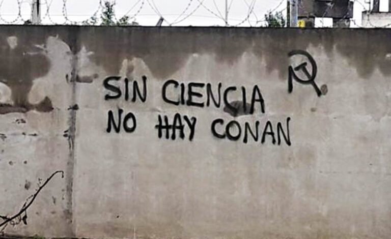 Casilda: dos jóvenes estudiantes detenidos en inusual operativo por pintar “Sin ciencia no hay Conan”