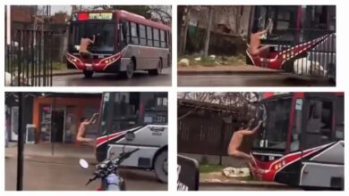 Un hombre desnudo en Merlo se colgó del limpiaparabrisas de un colectivo