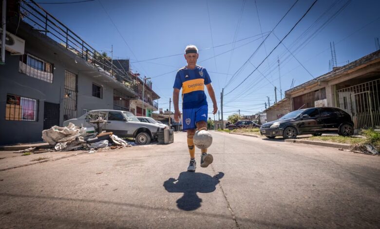 Es jubilado, hace jueguitos en Villa Fiorito y puede caminar hasta siete cuadras sin que se le caiga la pelota