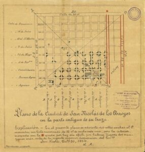 El trazado original: las 9 manzanas fundacionales se organizaron a partir del ombú de López. Foto: Museo Nacional Casa del Acuerdo.
