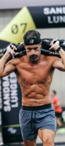 - Sandbag Lunges (100m):Zancadas caminando con saco de arena sobre los hombros. ( 20 kilos)
