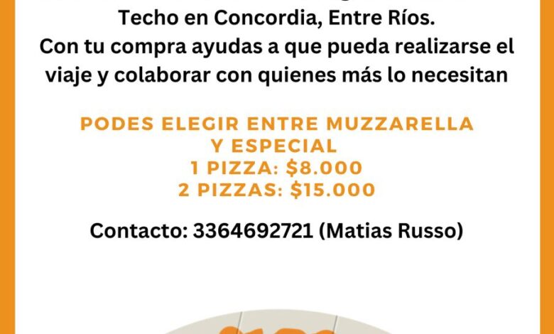 El número de teléfono para encargar las “pizzas solidarias” es 3364692721. “Tenemos promociones: 1 pizza especial o muzzarella por 8 mil pesos o dos por 15 mil”, precisó.