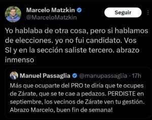 Un intendente “bofeteó” en X a un Passaglia: “en la sección saliste tercero”